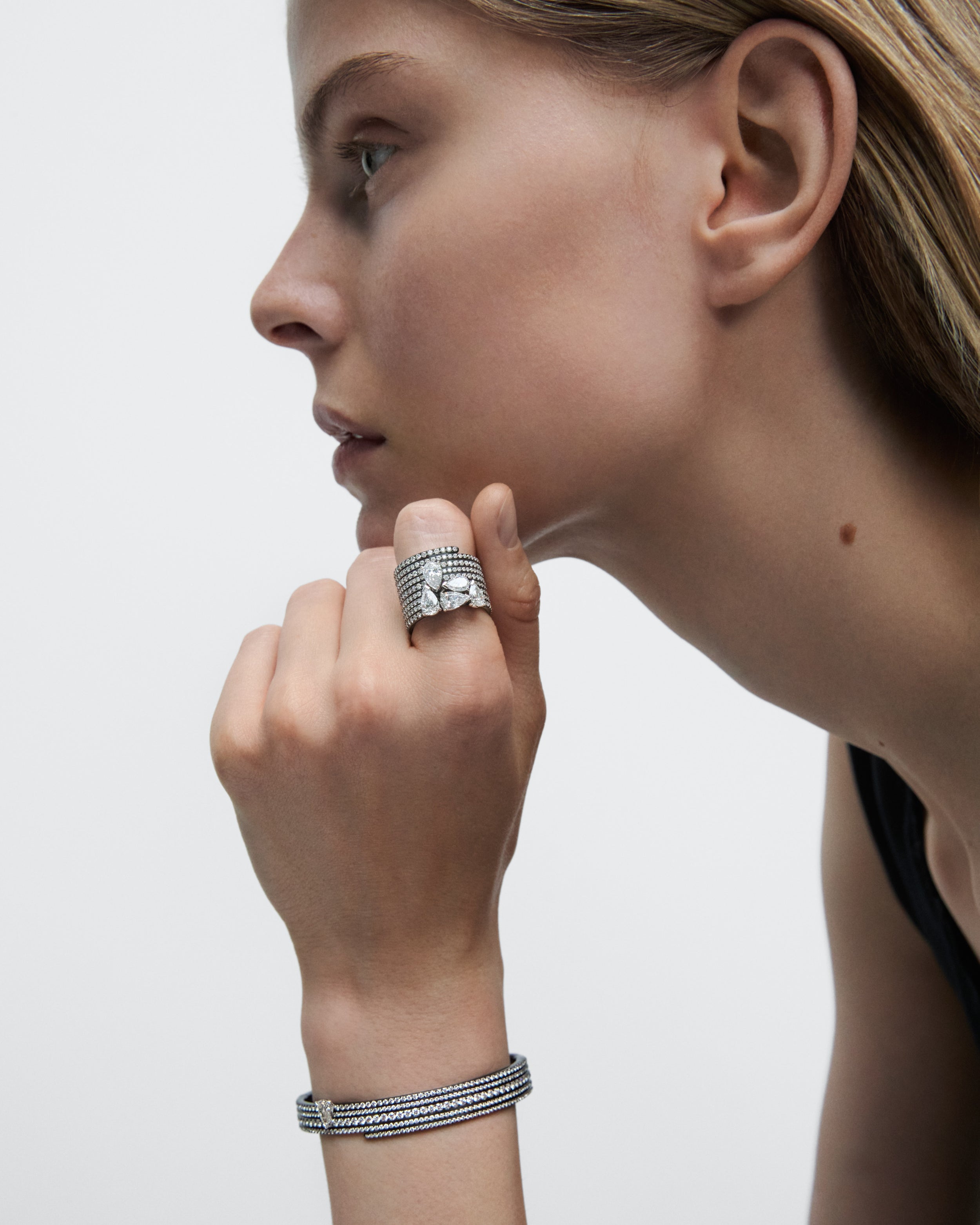 La manchette Blast de Repossi est une pièce saisissante qui réinterprète les bijoux traditionnels Masaï avec une touche de modernité. Réalisé à partir de fils d'or méticuleusement accumulés, ce bracelet arbore une élégance forte qui met en valeur les contours naturels du poignet. Inspiré des emblématiques manchettes Masaï, elle présente des fils d’or de diamètres différents, créant l'illusion d'une spirale dorée sans fin qui s'enroule harmonieusement autour du poignet. Chaque diamant est soigneusement sélectionné pour garantir une harmonie parfaite, mettant en valeur l'éclat et la beauté des pierres. Ce bracelet est une pièce d'affirmation audacieuse, une ode à la grâce et aux mouvements naturels du corps.